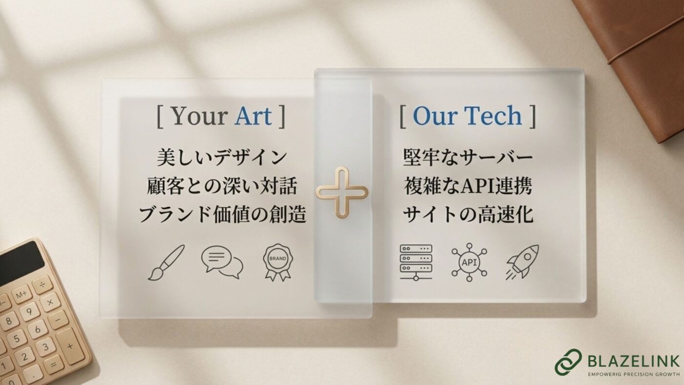 一方で、裏側のサーバー構築、WordPressの高度なカスタムAPI連携、サイトの高速化といった「技術(テクノロジー)」の領域は、すべて私たち台湾現地のデジタル・パートナー(BlazeLink)に託してください。